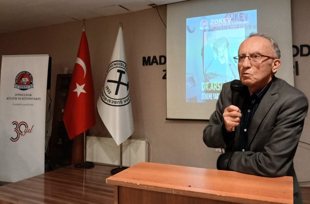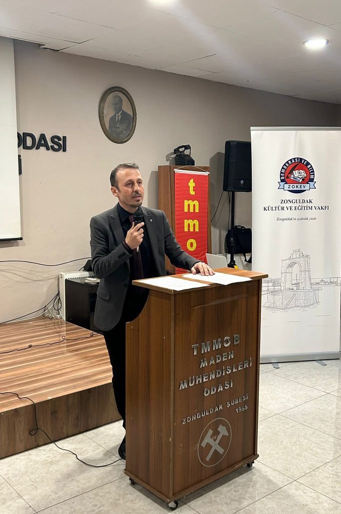 Dinletinin ardından açılış konuşmasını yapmak üzere Zonguldak Kültür ve Eğitim Vakfı Yönetim Kurulu Başkanı Üzeyir Karahasanoğlu kürsüye geldi ve şunları söyledi: