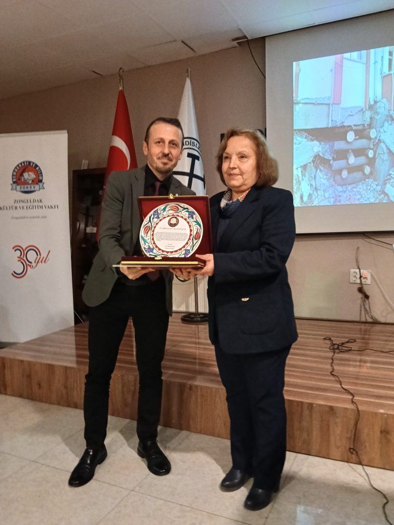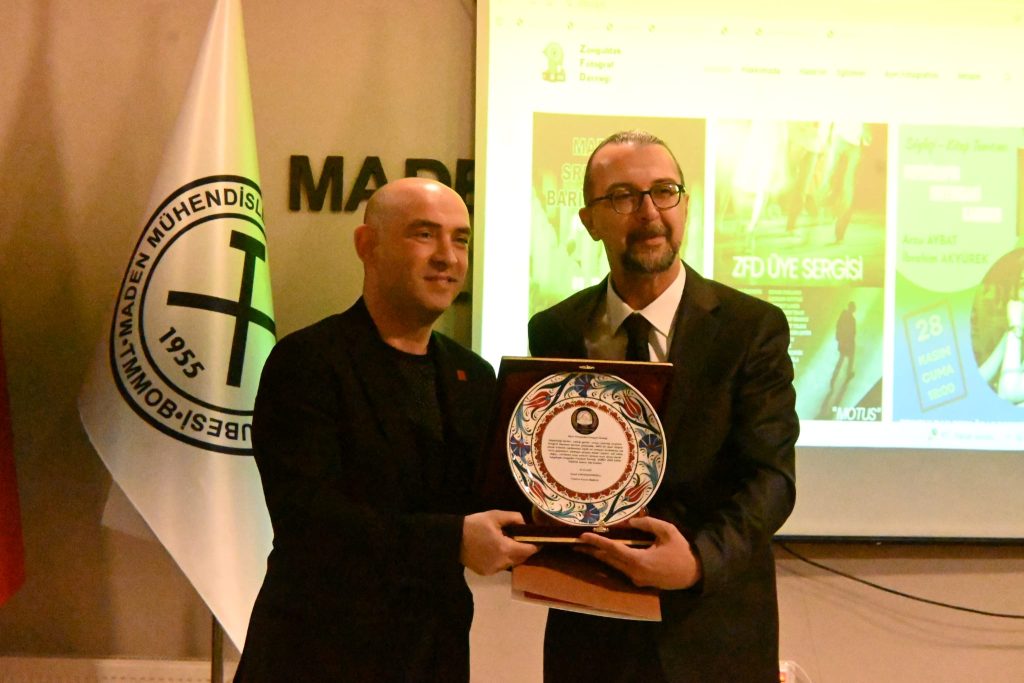 Zonguldak Fotoğraf Derneği adına Dernek Başkanı Güner Yaşkan’a ödülünü CHP İl Başkanı Devrim Dural, Türkiye Taşkömürü Kurumu İş Sağlığı, Güvenliği ve Eğitim Daire Başkanlığı adına Daire Başkanı Yaşar Uzunkavaklı Eren’e Vakfımız Başkanı Üzeyir Karahasanoğlu, TMMOB Maden Mühendisleri Odası Zonguldak Şubesi adına Başkan Erdoğan Kaymakçı’ya önceki dönemlerde başkanlığımızı yapan Zonguldak Belediye Kültür ve Sanat Merkezi Müdürü Kürşat Coşgun ile Zafer Kalafat verdi.