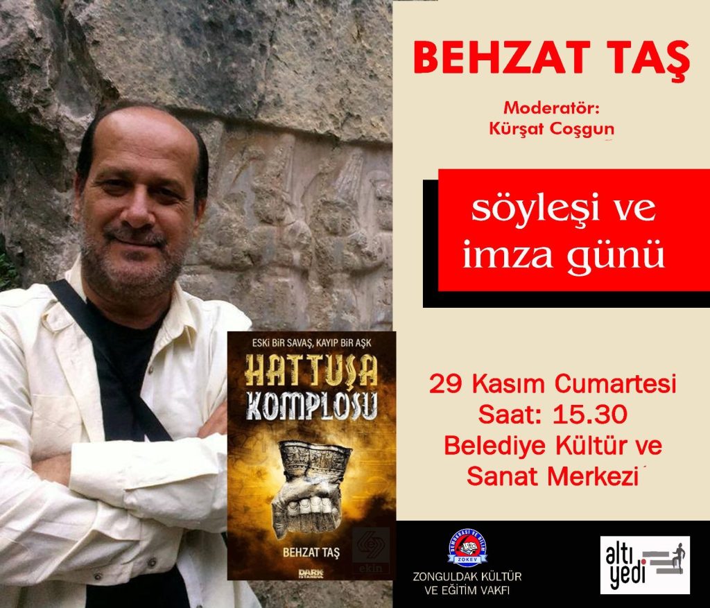 İlk romanı “Hattuşa Komplosu” ile konuğumuz olacak Behzat Taş, söyleşiden sonra kitaplarını imzalayacak. Etkinliğin moderatörlüğünü Belediye Kültür Merkezi Müdürü Kürşat Coşgun yapacak.